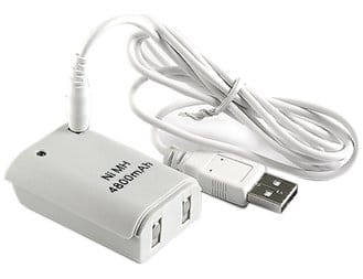 Dołączony kabel umożliwia podłączenie pada bezprzewodowego do konsoli Xbox 360 i ładowanie akumulatora podczas grania. Akumulator wchodzi w skład zestawu.